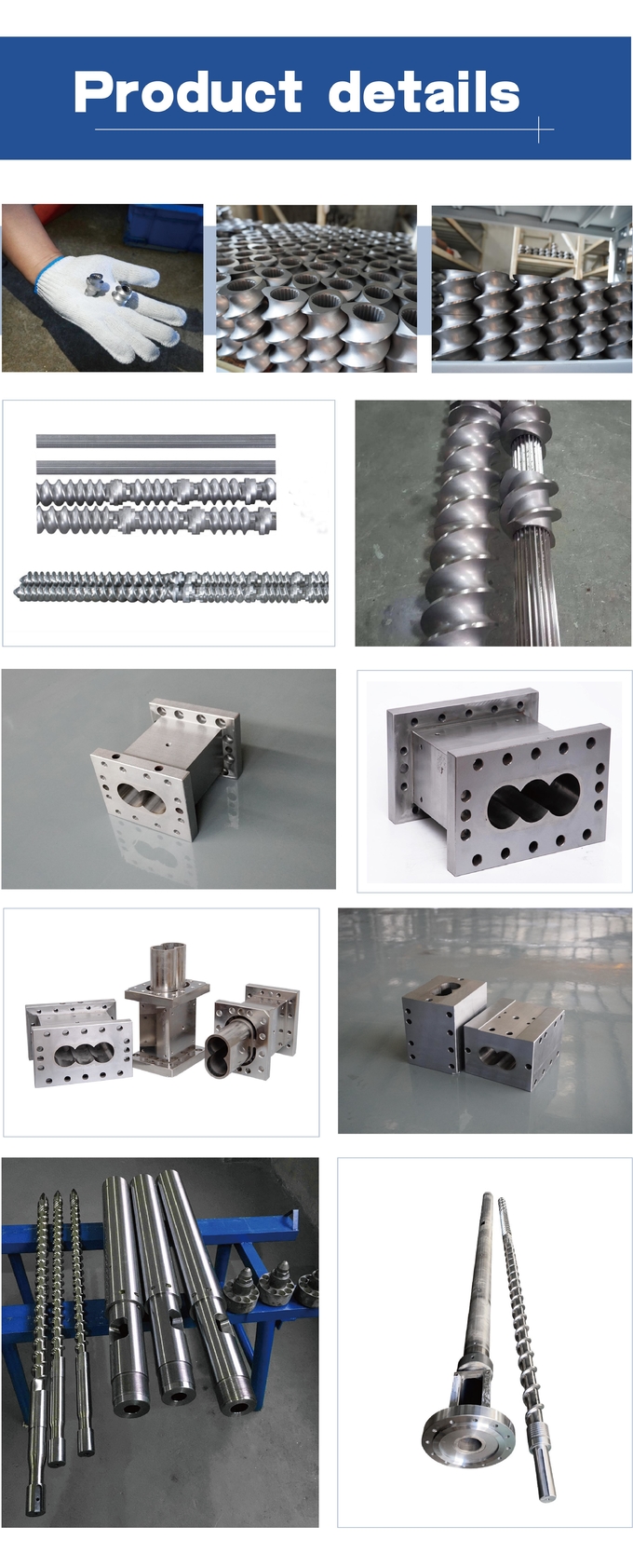 This screw is widely used in plastic pelletizing machines, including the processing of polyethylene (PE), polypropylene (PP), polyvinyl chloride (PVC) and other plastic materials. It is especially suitable for the production of various plastic granules, recycled plastic granules and engineering plastic granules.